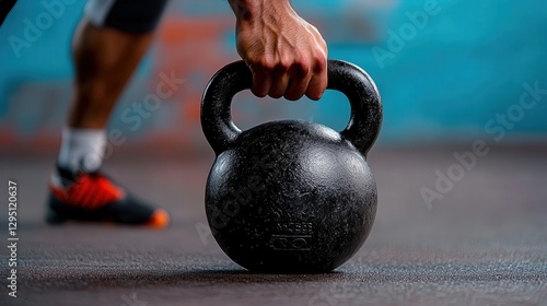 © Barbara Taylor, Fototapeta premium mans hand on a kettlebell.