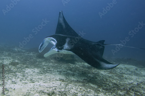Fototapeta premium Manta in the deep blue ocean background