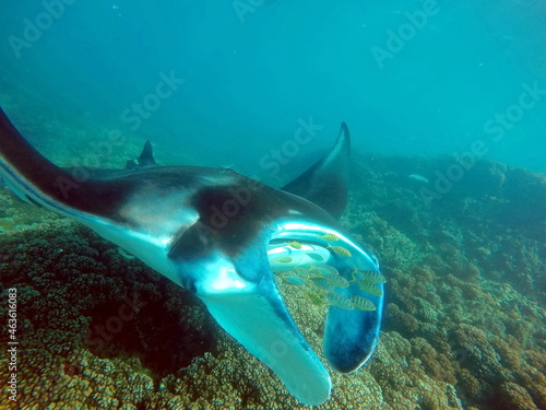 © Angela, Fototapeta premium Manta ray swimming above the reef in Fiji
