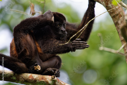 Fototapeta premium Manteled howler(Alouatta palliata) have sometimes parasites. With grooming each other or just scratching itself, it tries to get rid of it.