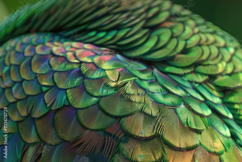 © darshika, Fototapeta premium Mantle feathers of male green peafowl peacock Pavo muticus
