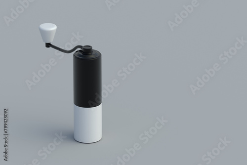 Fototapeta premium Manual grinder for coffee beans on gray background. Copy space. 3d render