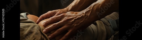 Fototapeta premium Manual Therapy for Muscle Recovery Therapist's Hands Applying Pressure to Focused Patient During a Session, Promoting Healing and Pain Relief