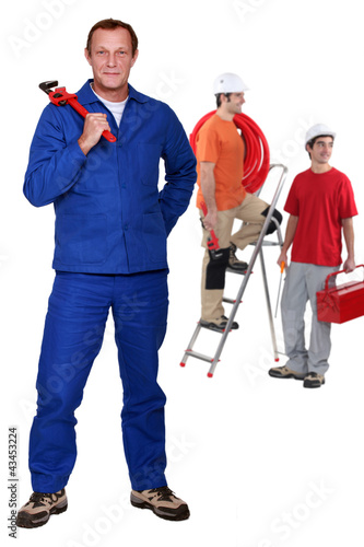 © auremar, Fototapeta premium Manual worker with step ladder