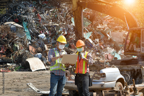 Obraz premium Manufacturers Engineer and tablet working at plastic bag manufacturers.