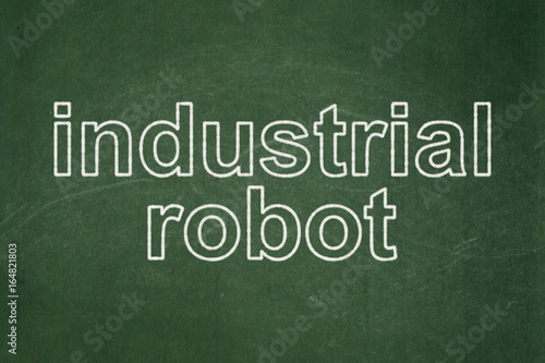 Fototapeta premium Manufacuring concept: Industrial Robot on chalkboard background