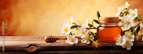 Fototapeta premium Manuka honey in a jar. Generative AI,