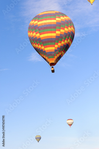 Fototapeta premium Many balloons over the extraordinary rocks formations rock hills in...