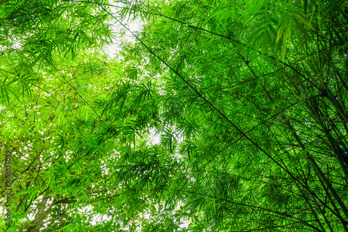 Fototapeta premium Many bamboo stalks and light beam,bamboo thick and green,bamboo forest with...