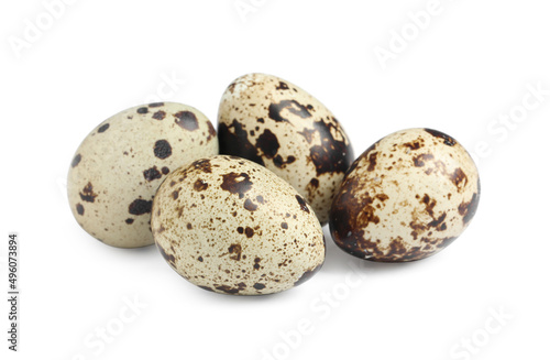 Obraz premium Many beautiful quail eggs on white background