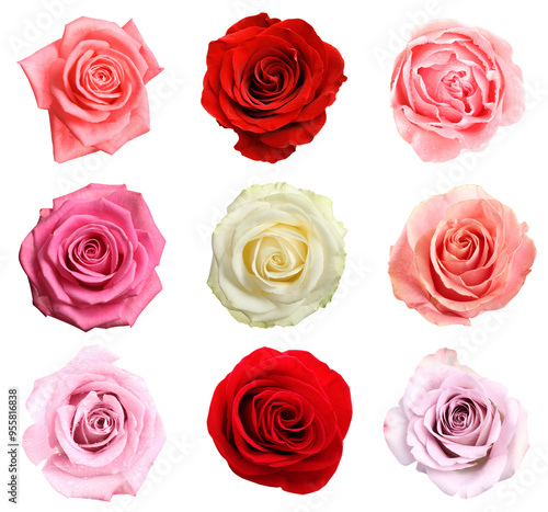 © New Africa, Fototapeta premium Many beautiful roses isolated on white, set