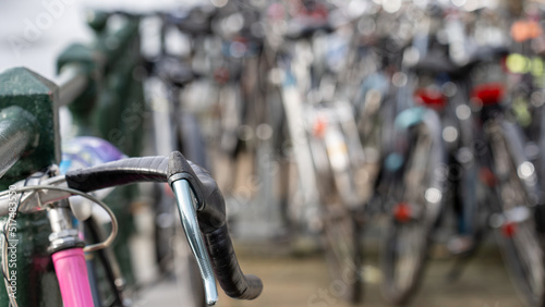 Obraz premium Many bicycles standing on a canal in Amsterdam - selective focus
