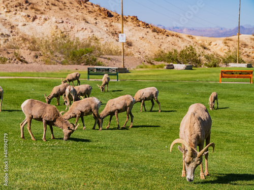 Obraz premium Many big horn sheep at Hemenway Park