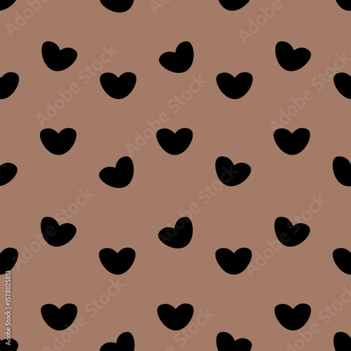 © Gebbi Mur, Obraz premium Many big rounded hearts. Silhouette. Seamless vector pattern. Repeating romantic ornament. Isolated mocha mousse background. Romantic love symbols. Idea for web design.