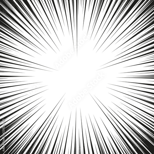 © Oleksandr, Obraz premium Many black comic radial speed Lines on white base. Effect power explosion illustration. Comic book design element. Graphic Explosion with Speed Lines in comic book style. Vector Illustration