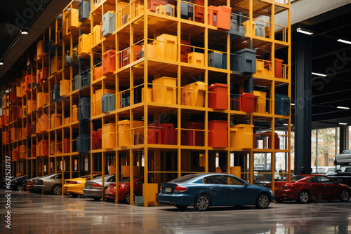 © itchaznong, Fototapeta premium Many car in Luxury garage. Car lot or parking lot. Generative AI