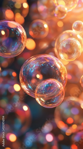 © Ari, Naklejka premium Many clear and colorful bubbles floating in the air together