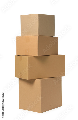 © New Africa, Fototapeta premium Many closed cardboard boxes on white background. Delivery service