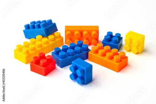 © Photour1904, Obraz premium Many color square puzzle toys isolated on a white background.