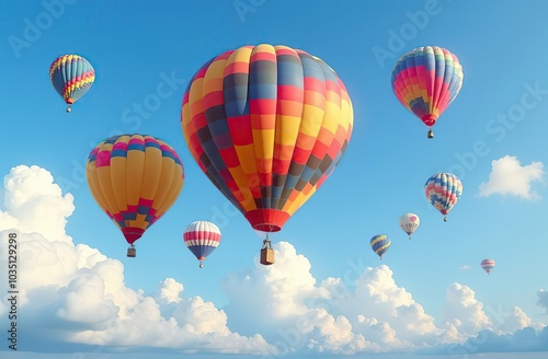 © Kseniya Ananko, Naklejka premium Many colorfull hot air balloons in the sky at blue sky with clouds background