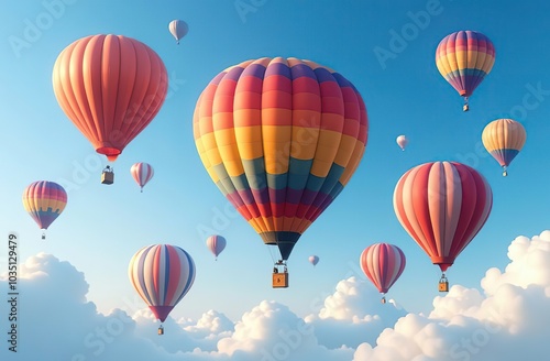 Fototapeta premium Many colorfull hot air balloons in the sky at blue sky with clouds background