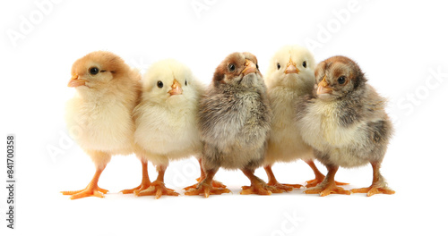 © New Africa, Fototapeta premium Many cute chicks isolated on white. Baby animals