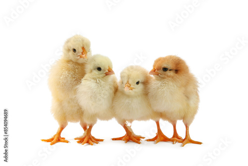 © New Africa, Fototapeta premium Many cute chicks isolated on white. Baby animals