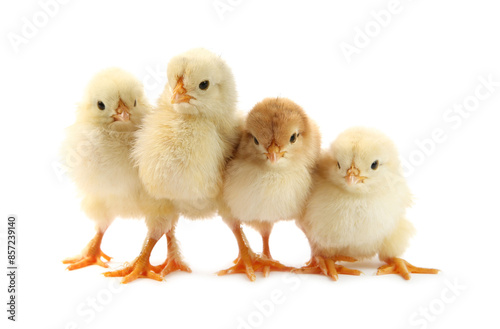 © New Africa, Fototapeta premium Many cute chicks isolated on white. Baby animals