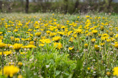 Fototapeta premium many dandelions in the meadow