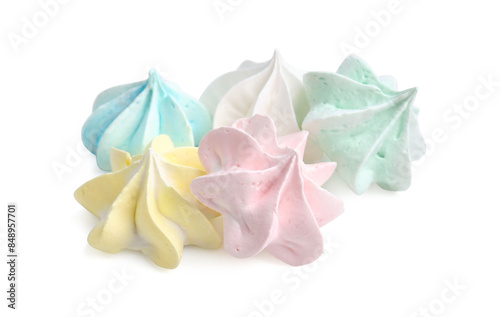 © New Africa, Obraz premium Many delicious meringue cookies isolated on white