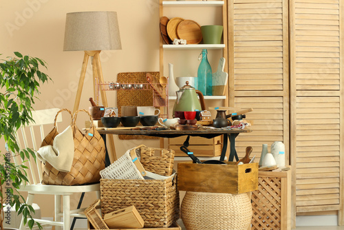 © New Africa, Obraz premium Many different cooking utensils in room. Garage sale