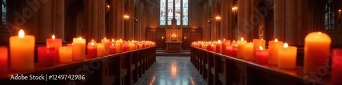 Fototapeta premium Many flickering candles in a church sanctuary , design, candles, calm