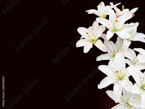 Fototapeta premium many flowers of a delicate white Lily on a black background
