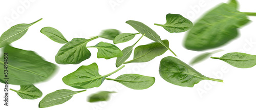 © Pixel-Shot, Fototapeta premium Many flying spinach leaves isolated on white