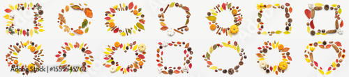 © Pixel-Shot, Fototapeta premium Many frames made of autumn leaves on white background