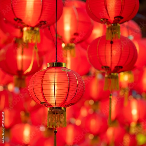 © Kari, Obraz premium Many glowing red lanterns hanging