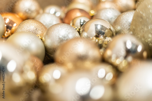 © Hanna, Fototapeta premium Many golden christmas tree balls