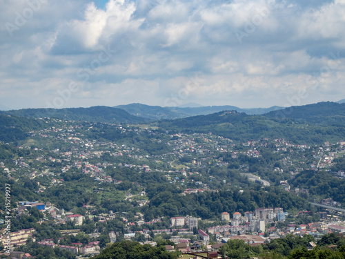 Fototapeta premium Many houses in the mountainous area of Sochi