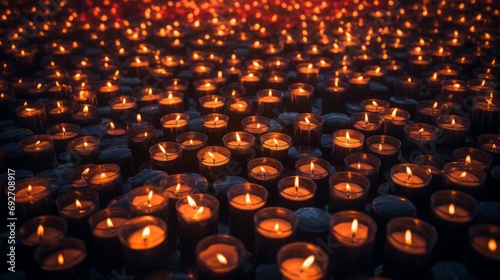 © Yahor Shylau , Obraz premium Many lit burning candles background.