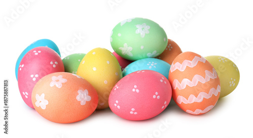 Obraz premium Many painted Easter eggs isolated on white