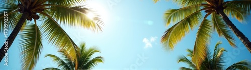 Naklejka premium Many palm trees that are standing in the sun