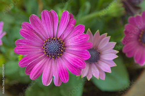 © Karsten Leineke, Fototapeta premium Many pink dimorphotheca ecklonis in the garden with green bokeh background