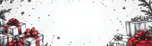 © Roman, Obraz premium Many presents on a white background with snowflakes, christmas holiday