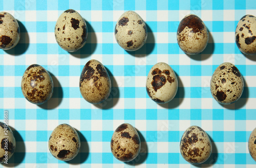 © Pixel-Shot, Obraz premium Many quail eggs on color background