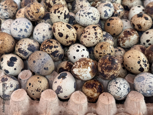 © Kathleen JT, Obraz premium many raw equail eggs in market