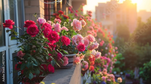 © sch_ai, Naklejka premium Many roses many colors beautiful roses garden planters