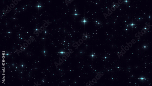 Fototapeta premium Many small, bright teal stars twinkle against a dark, deep space background.