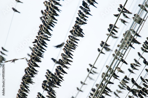© Sarin, Fototapeta premium Many swallow on the line