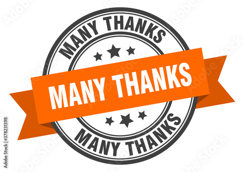 Obraz premium many thanks label sign. round stamp. band. ribbon