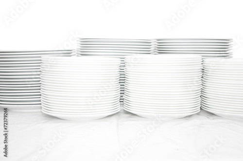 Obraz premium Many white different plates stacked together